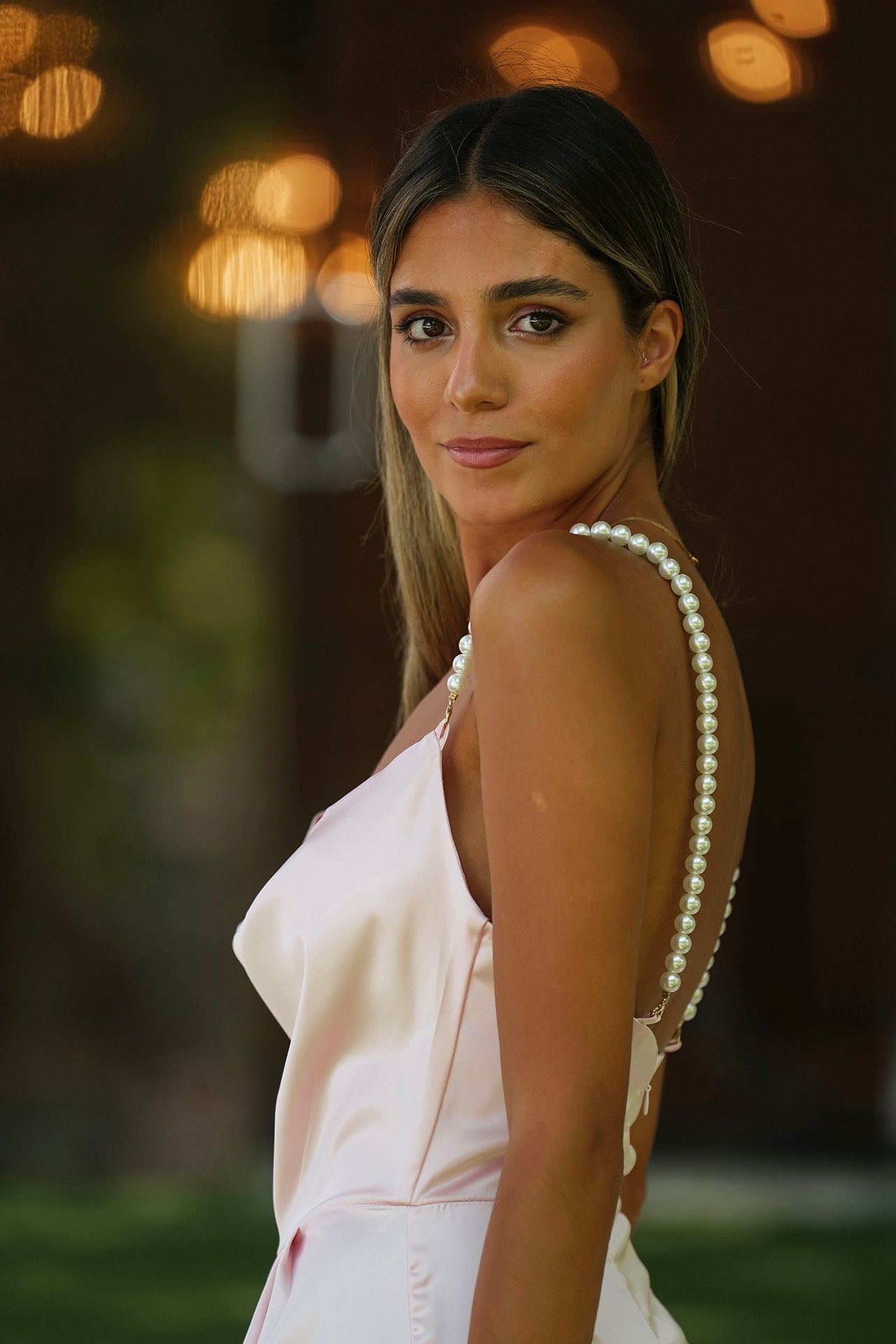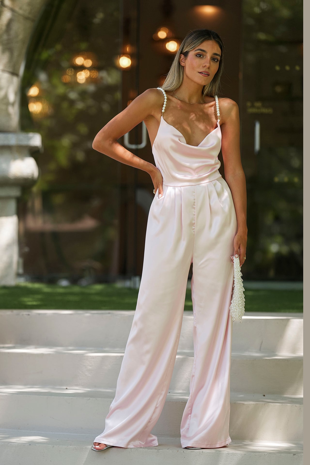 Macacão com alças em pérolas.