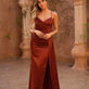 Vestido acetinado com copas; aperta atras com atilhos reguláveis e com fecho;