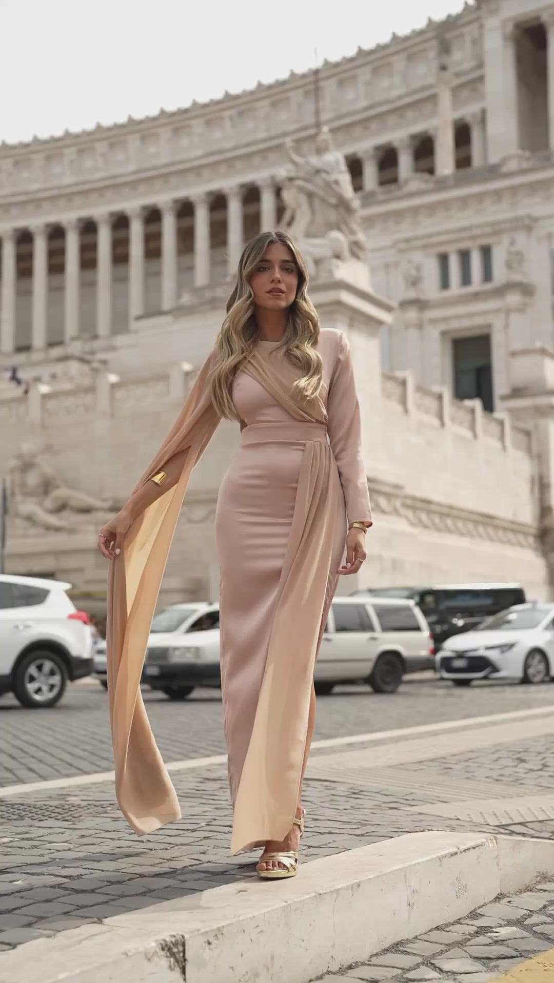 Dress with side slit on the left leg;