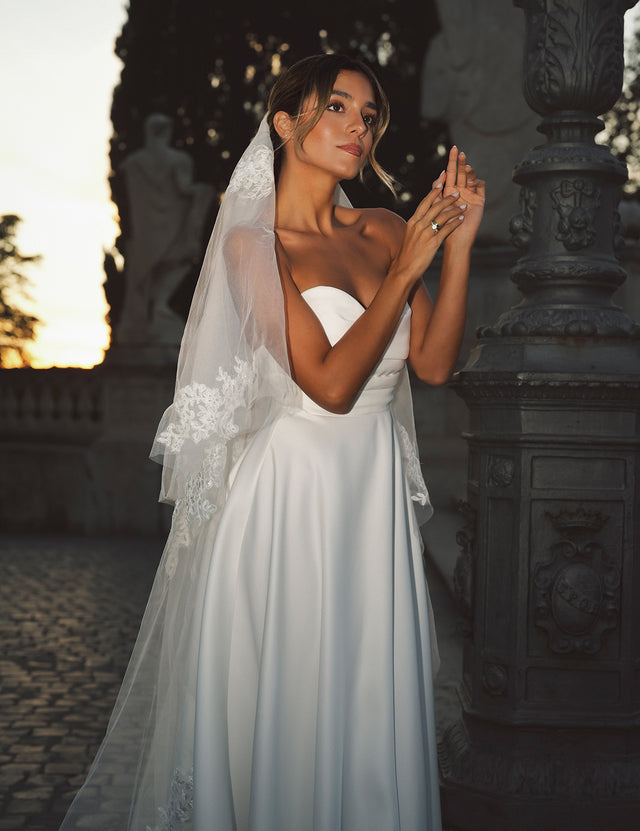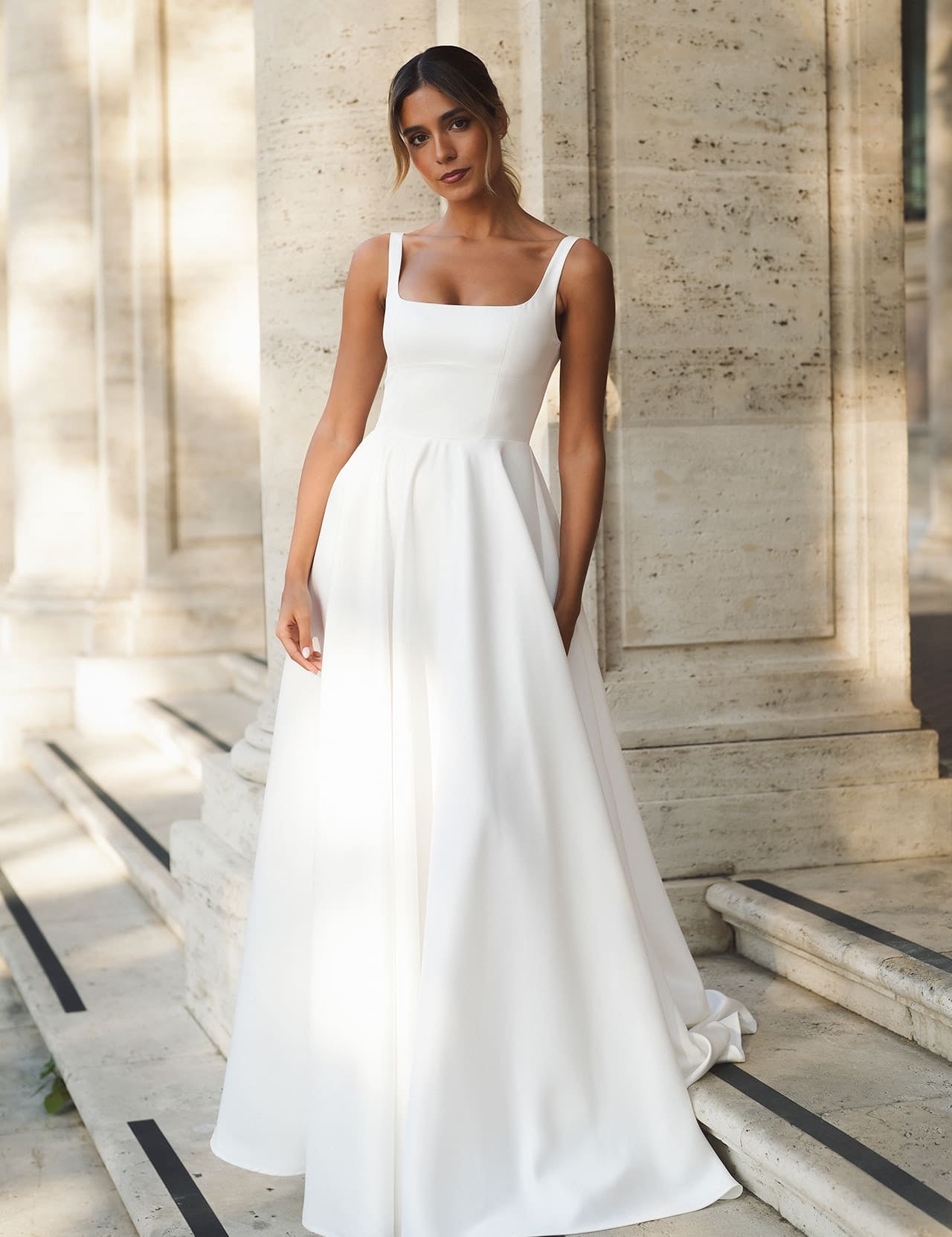 Vestidos de líneas simples y elegantes, con encajes y satines que exaltan la feminidad con elegancia.