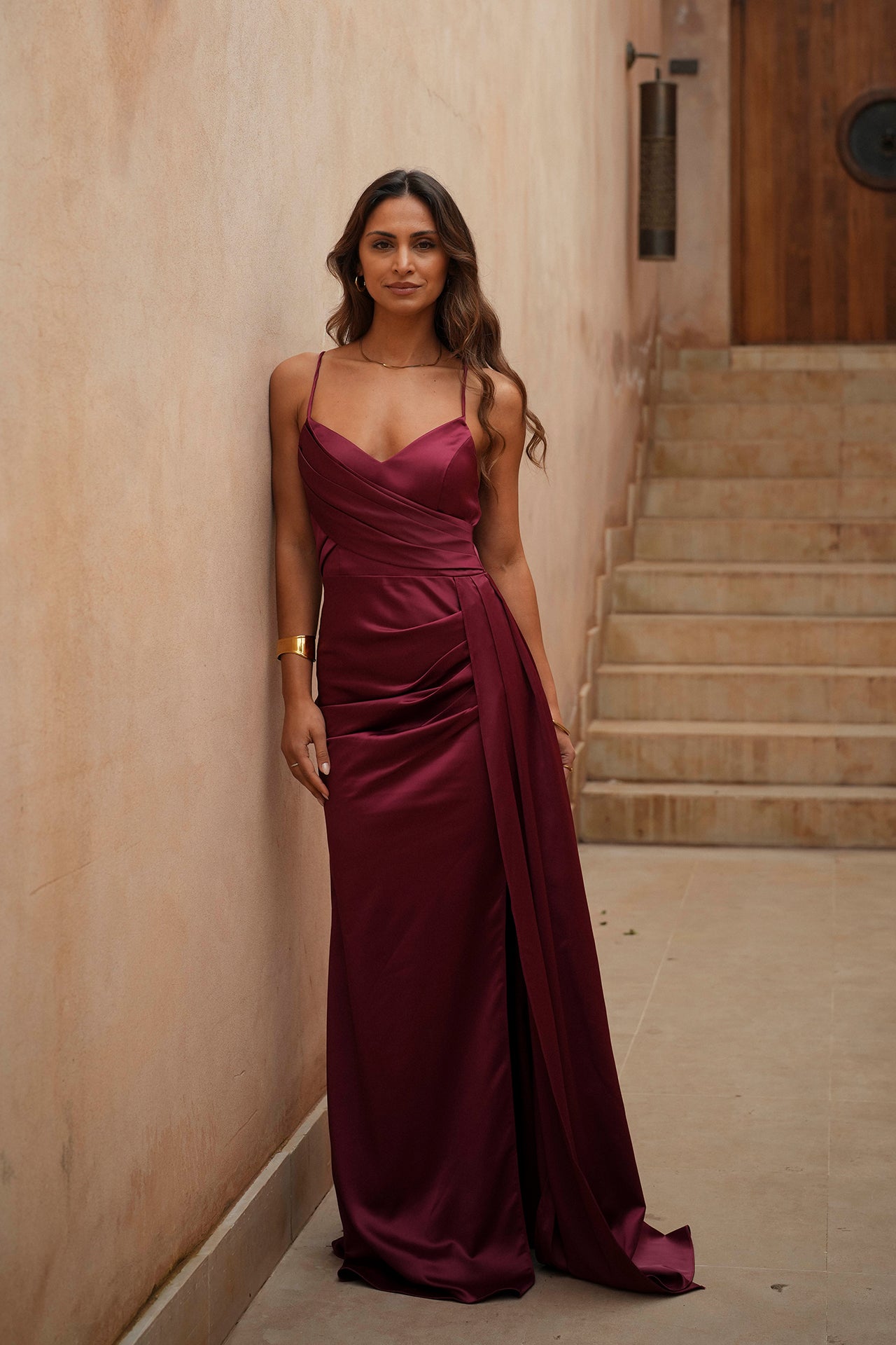 Robe satinée avec bonnets ; se serre à l'arrière avec des lacets réglables et une fermeture ;