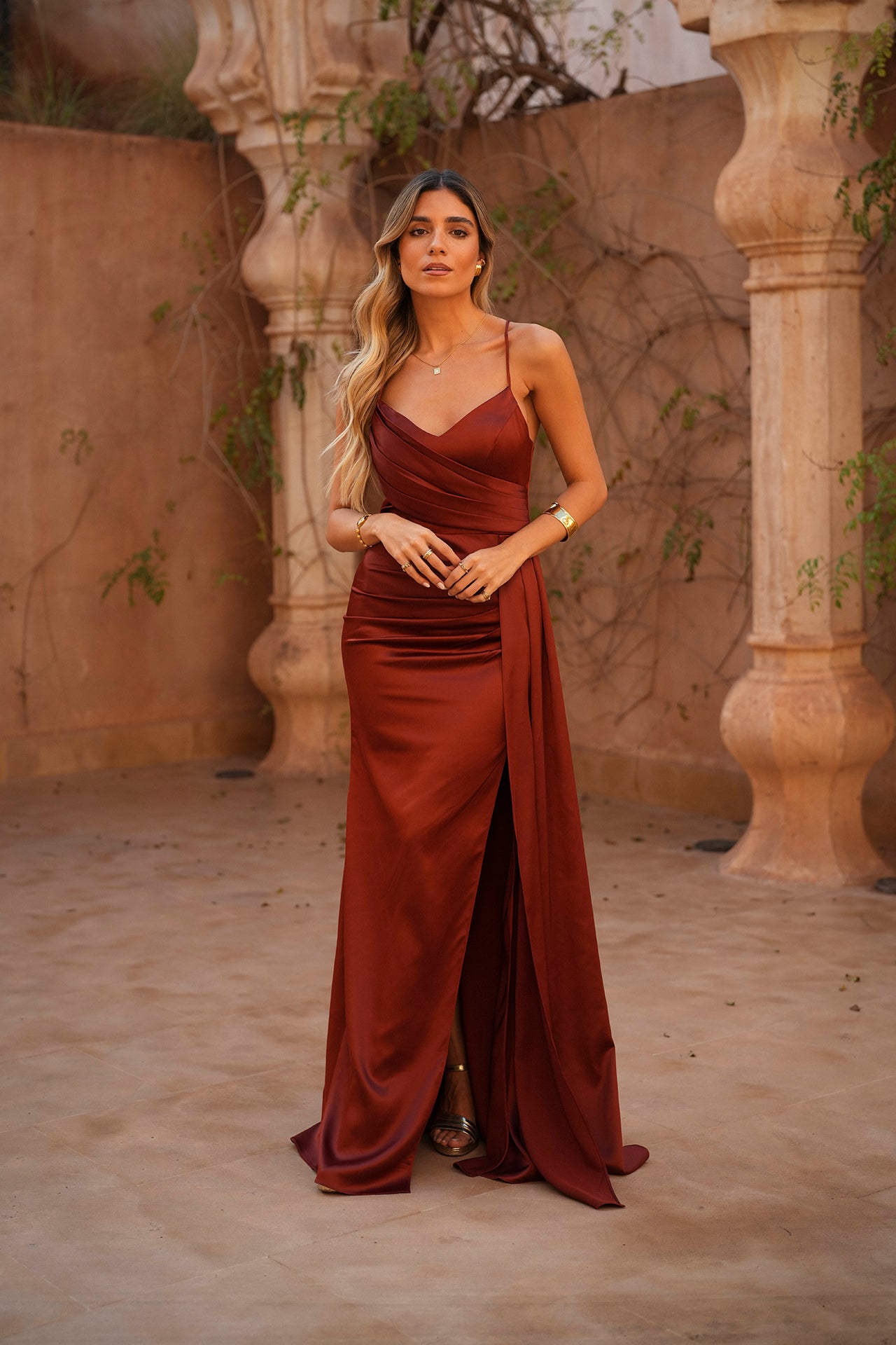 Robe satinée avec bonnets ; se serre à l'arrière avec des lacets réglables et une fermeture ;