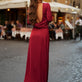Vestito satinato con scollo sul retro.