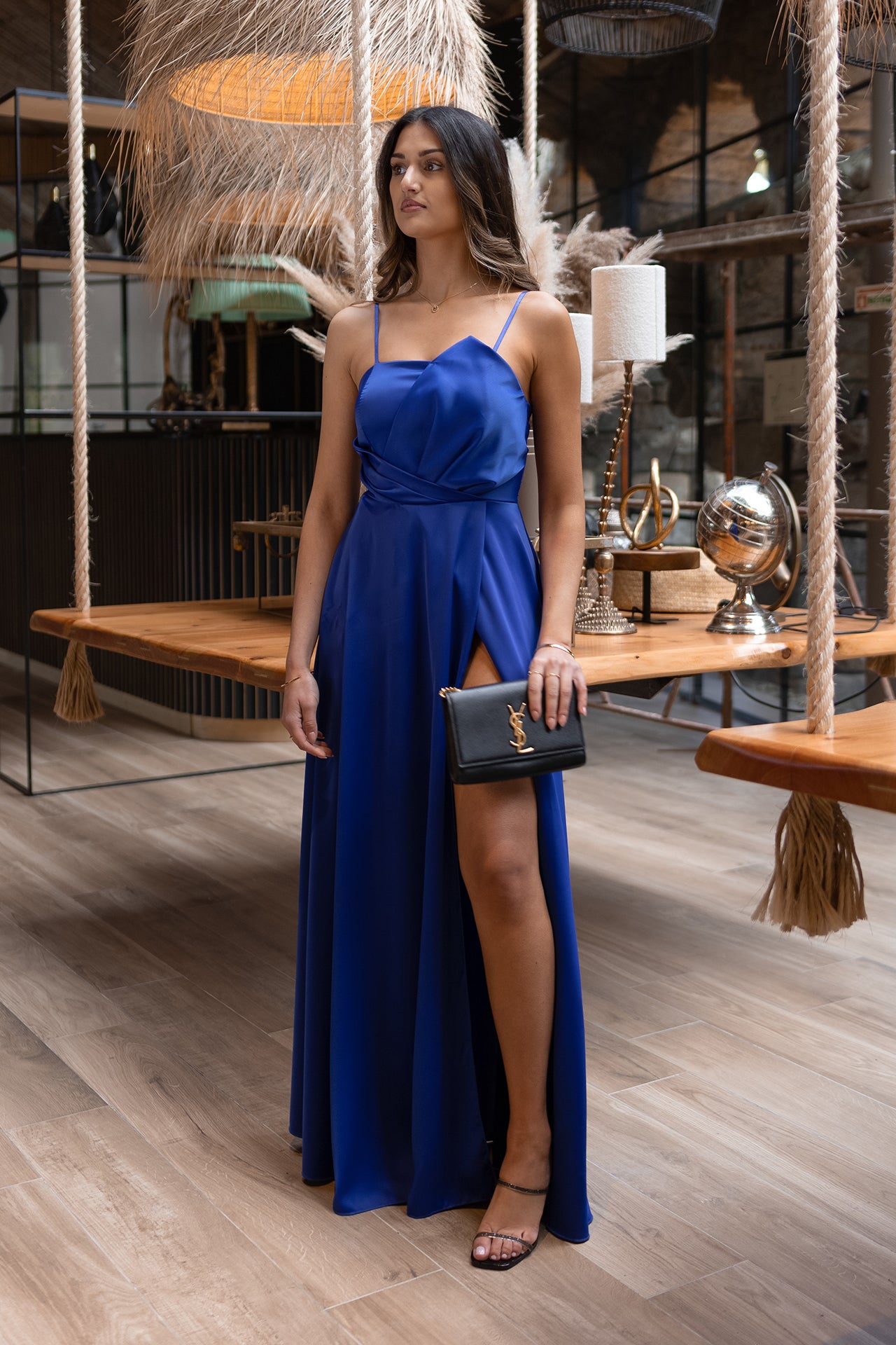 La modella indossa la taglia S, è alta 1,70 cm e porta tacchi di 10 cm. .