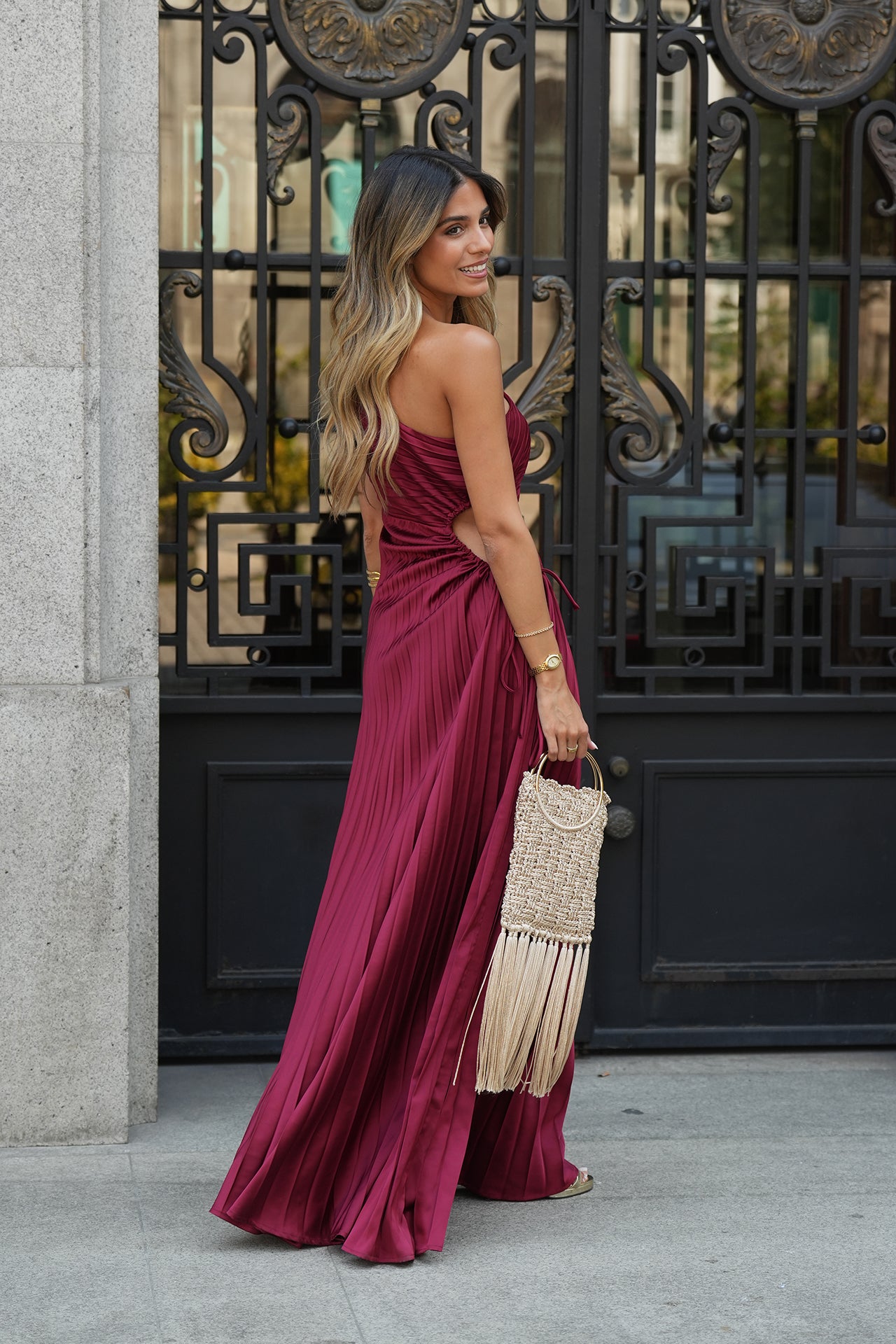 Vestido plissado cut-out.
