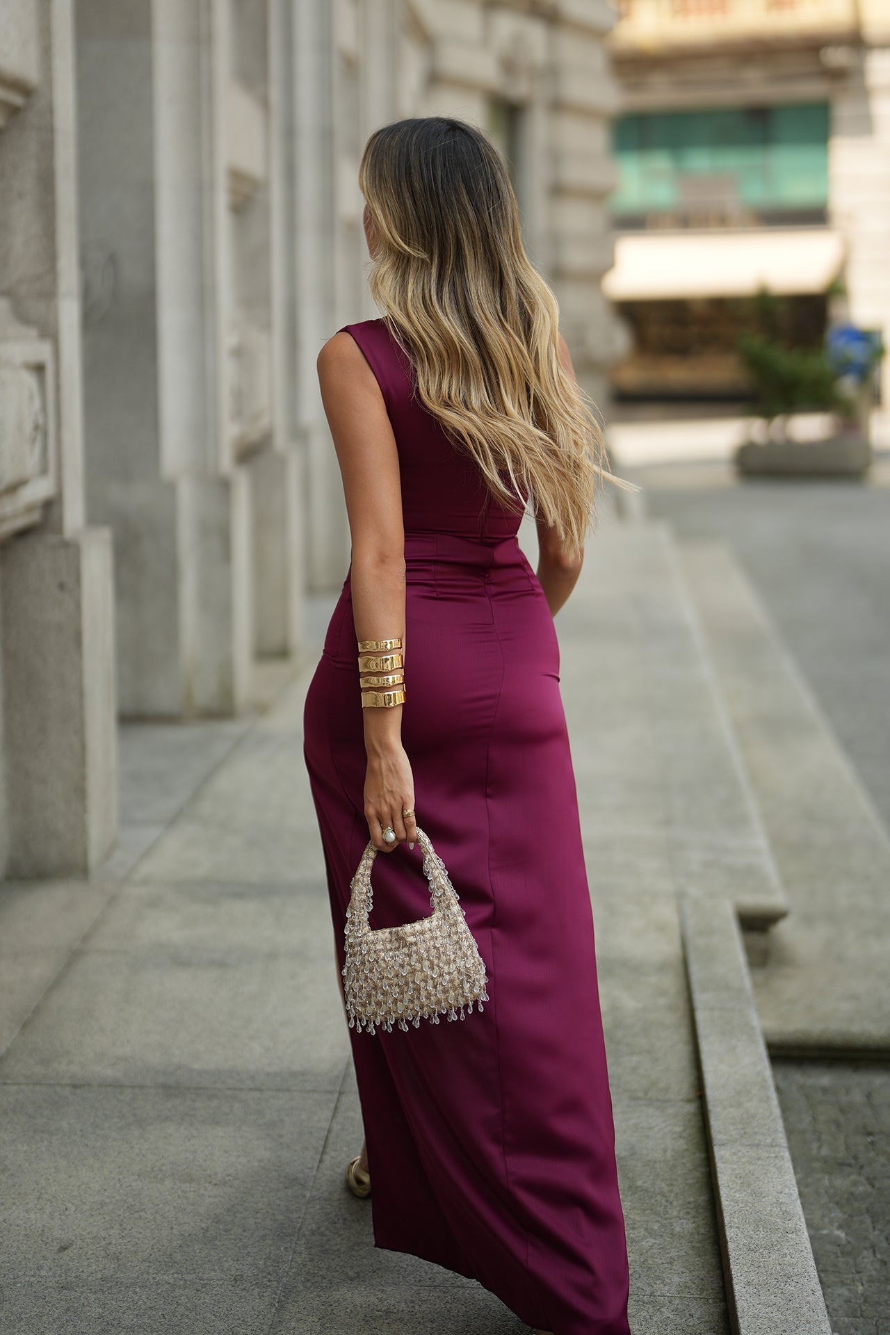 Vestido acetinado com copas.